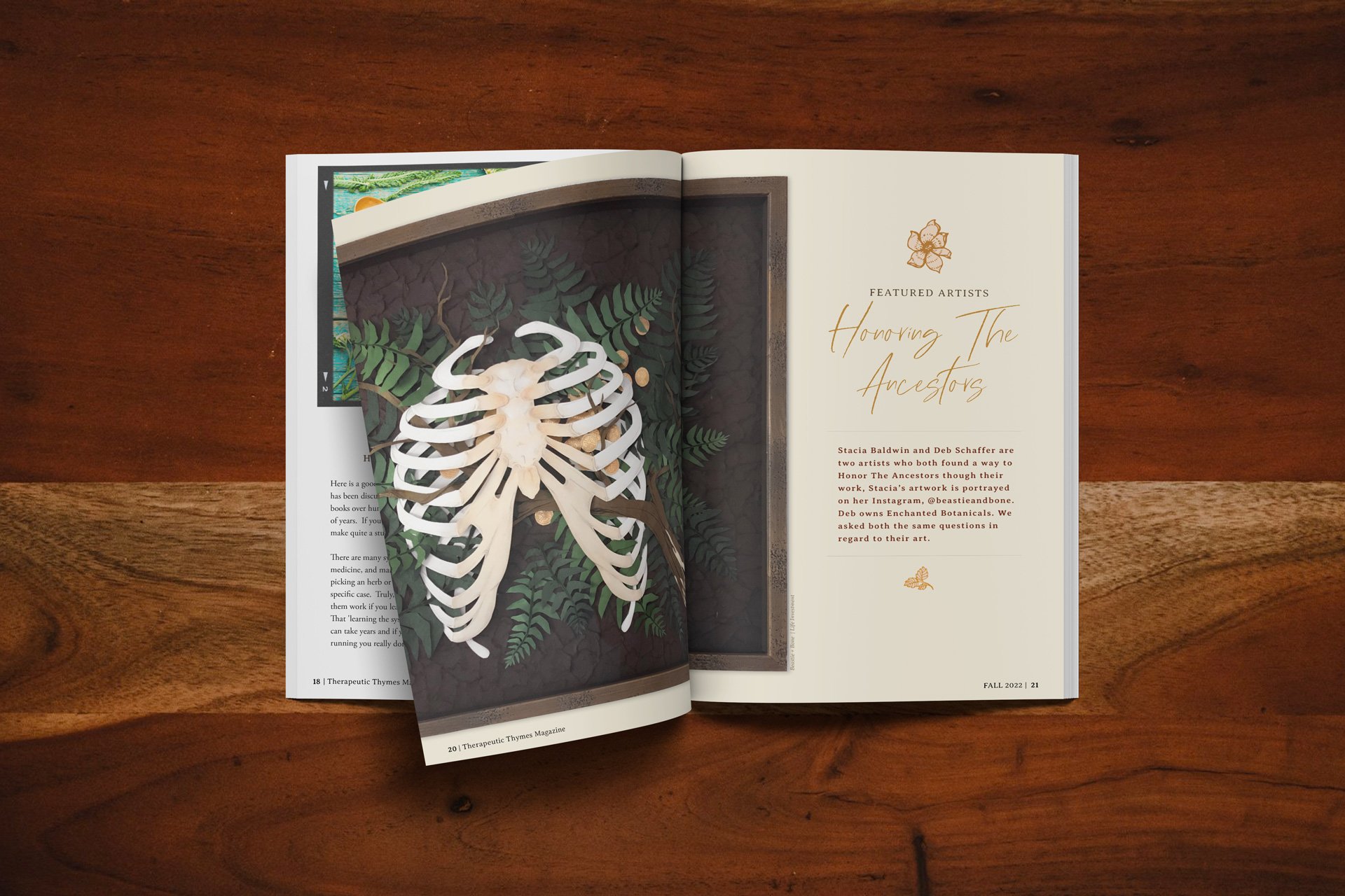 For the fall issue of Therapeutic Thymes I suggested to Jeanne, the creator of TT, to try a new feature for the fall issue. My idea was to feature an artist that I thought matched the theme of the issue, which was to Honor The Ancestors. She liked my idea and let me run with the concept. So, I reached out to Stacia Baldwin of Bestie and Bone, an artist who I’ve been following on Instagram for a while, to see if she was interested in being featured.